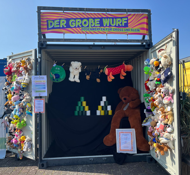 Unser Stand zeigt, dass es nicht immer neue Dinge sein müssen: Hier kann man Second Hand Kuscheltiere gewinnen, anstatt Neuware. Die Kuscheltiere werden zu den Dosen+Bällen mitgeliefert.