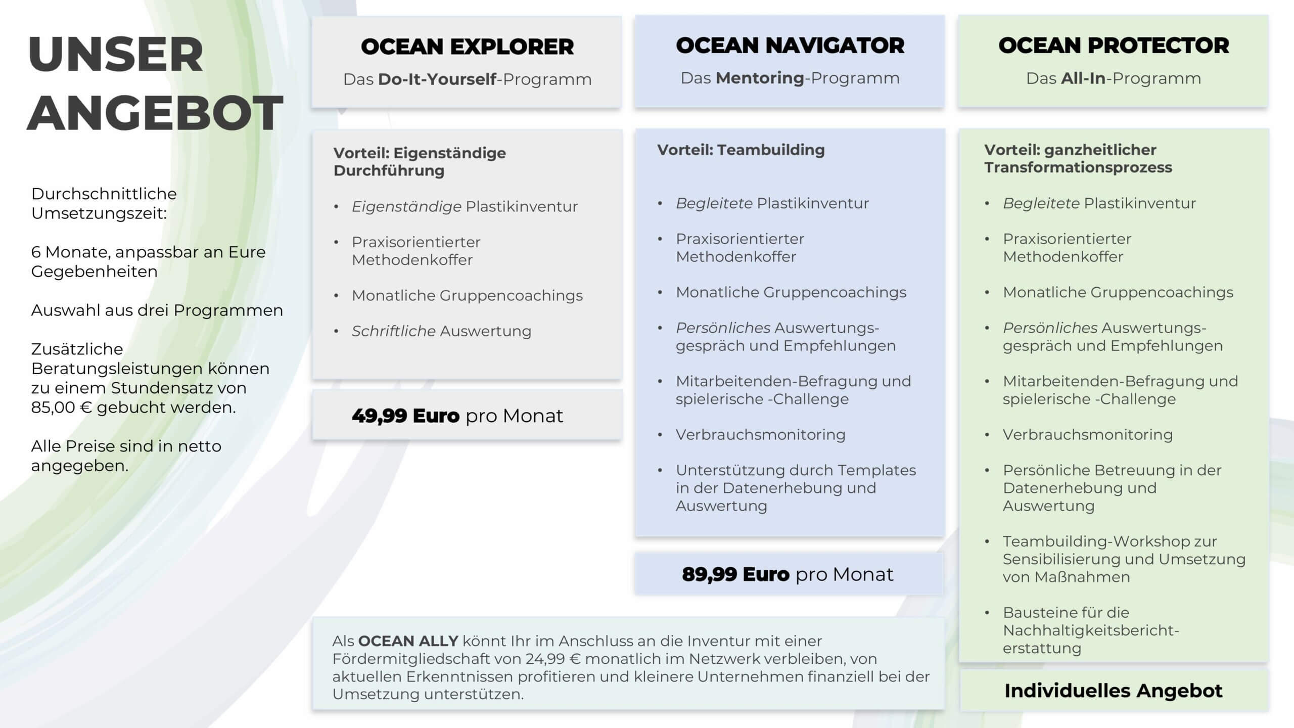 Wir bieten verschiedene Pakete an: Von der selbstorganisierten Plastikinventur bis hin zu Workshops und Beteiligung der Mitarbeitenden. Immer enthalten sind: